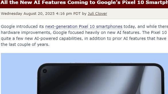 资料来源:综合全球网络技术报告],随着智能手机市场越来越激烈,AI的能力正成为主要制造商竞争的新战场。据外国媒体麦克拉穆(McCramou)称,8月21日,谷歌最近推出了其下一个代理像素10智能手机。该手机不仅更新了硬件,而且还可以从AI功能方面发光。这似乎对Apple iPhone 17造成了很大的压力。Google系列这次带来了Pixel 10的新功能。魔术提示功能是一项信息助理,可让您积极地向用户提交相关信息并为操作提出建议。拨打航空公司时,您的航班上的信息将自动出现。如果朋友要求一张照片,则将立即致电相关照片。这方面的信息。关于呼叫,Pixel 10“消息”功能提供了真实的-Time Transcripti丢失或拒绝的电话。尽管苹果为传入语音邮件提供了类似的服务,但此Google功能肯定为用户提供了更方便的东西。语音翻译功能是像素10的亮点。不仅允许实时翻译呼叫,而且还模仿每个说话者的声音以使沟通更自然。此外,在用英语翻译时,它承认了超过苹果的各种语言,包括西班牙语,德语,法语和其他人,并满足各种用户的需求。此外,Pixel 10基于简短的文字描述生成视频,从而为用户带来了新的创意体验。 Gemini Live的Visual Guide与AI的对话更加直观,并提供更好的指南视觉效果,以突出显示屏幕的内容。最自然的语音特征使双子座的现场声音可以接近人类,并根据用户的要求调整语音速度和口音e更具表现力的对话。通过在2026年启动更新的Siri版本,Apple具有一系列特征和特征。但是,苹果说,没有独立的主语言模型,因此它在编辑真实时间AI的图像和能力方面落后。 Google更新的Pixel 10设备已保留,并将在本月底正式推出,Apple的iPhone 17系列将于9月离开。 (哇王)